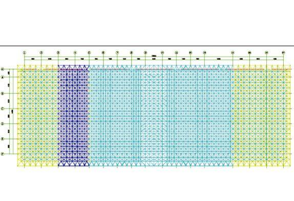 Usually, the design unit of the analysis of the structure is after the establishment of the overall structure model, at the same time to apply the load to carry out. But in fact, the construction is carried out in sections, and even the same part will have different construction sequences and loading conditions. The difference between the structural system under construction conditions and the original design state will lead to the difference between the original design analysis result and the actual structural effect during construction. When the structural system changes with the progress of the project, the internal force of the component is in the stage of dynamic adjustment, and its maximum deformation and stress may occur in the construction stage. Therefore, in order to predict the deformation and stress changes in the construction stage, it is very necessary to analyze the construction stage. This case uses finite element software MIDAS to simulate and analyze the whole construction process of the steel structure. The structure is installed with temporary support, the top of the temporary support is supported on the lower string ball of the space frame, and the temporary support is arranged in position. (As shown in FIG. 4) In the calculation model, the temporary support position adopts a hinged constraint. (See Figure 4).