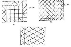 (3) Triaxial type (see Figure 1c): Since the support plane itself consists of geometrically stable triangles, no additional bracing is required.